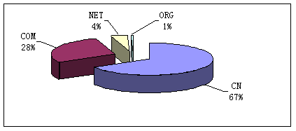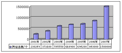 2007年底,网站总数达到150万个,比上年同期增长了66万个,增长率达到78.4%。.CN下的网站数已经达到100.6万个,所占比重达到66.9%(参见图1.20,图1.21)。