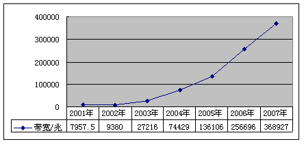 2007年底,网络国际出口带宽总量达到368927Mbps,同比增长43.7%(参见图1.22); IPv4数量达到1.35亿个,同比增长37.7%,占全球IPv4数量的4%,排在美国、日本之后,位居世界第三。